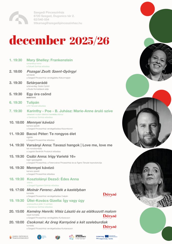 Tájékoztatás jegyiroda újranyitásáról Kedves Nézőink!Nagy örömmel tájékoztatjuk Önöket és minden kedves érdeklődőt, hogy jegyirodánk szeptember elsejétől újra kinyit, minden hétköznap 9 órától 14 óráig. A jegyfoglalásokat továbbra is nagy szeretettel fogadjuk e-mail címünkön.